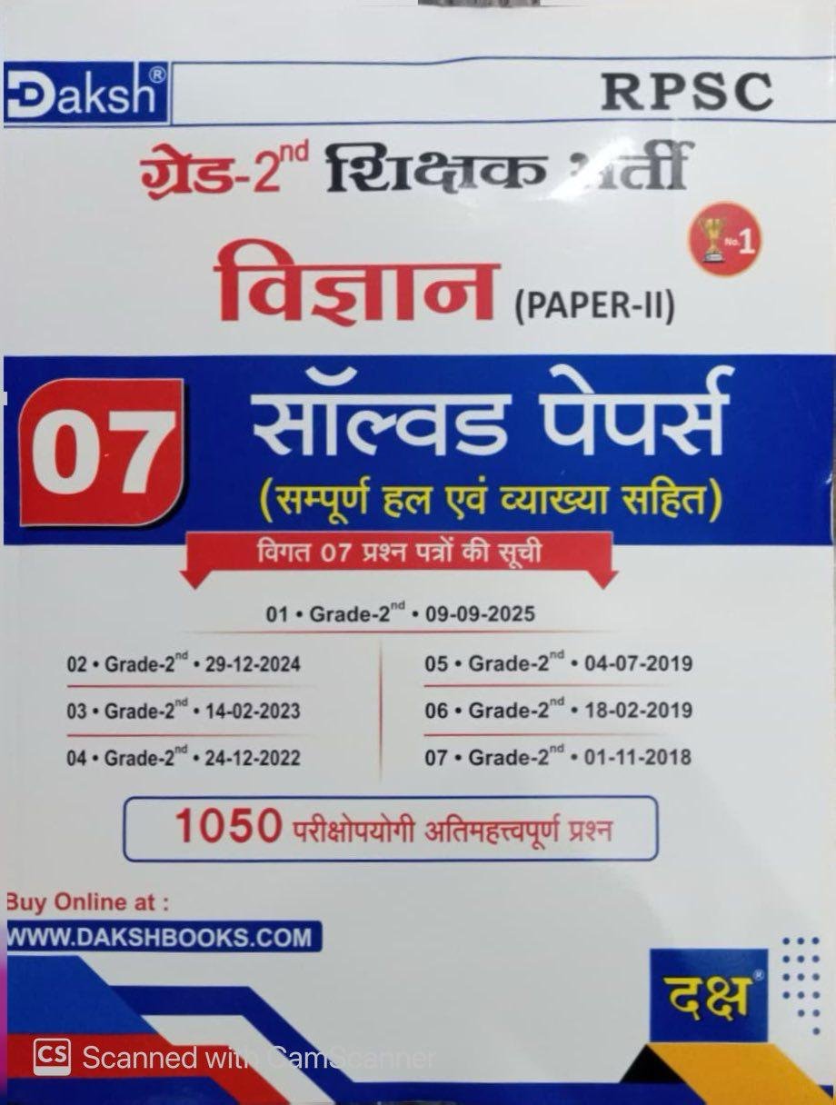 Daksh 2nd Second Grade Vigyan (Science) Paper 2 With 7 Solved Papers New Edition 2026 By For RPSC 2nd Grade Senior Teacher Examination By Daksh Publication