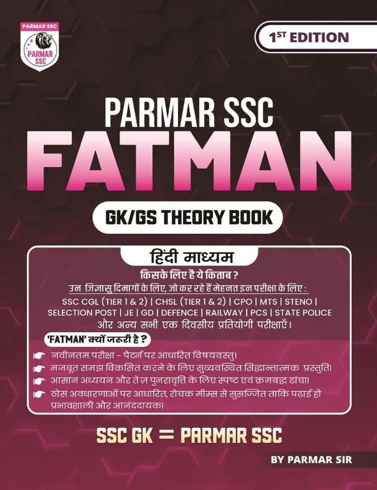 Parmar SSC Fatman | Hindi Medium | GK/GS Theory Book | 1st Edition, 2025 | Useful For SSC CGL and CHSL (Tier 1 & 2) | CPO | MTS | Steno | Selection Post | JE | GD | Defence | Railway | PCS | State Police & All Other One Day Competitive Examination By Parmar Publication, Parmar Sir